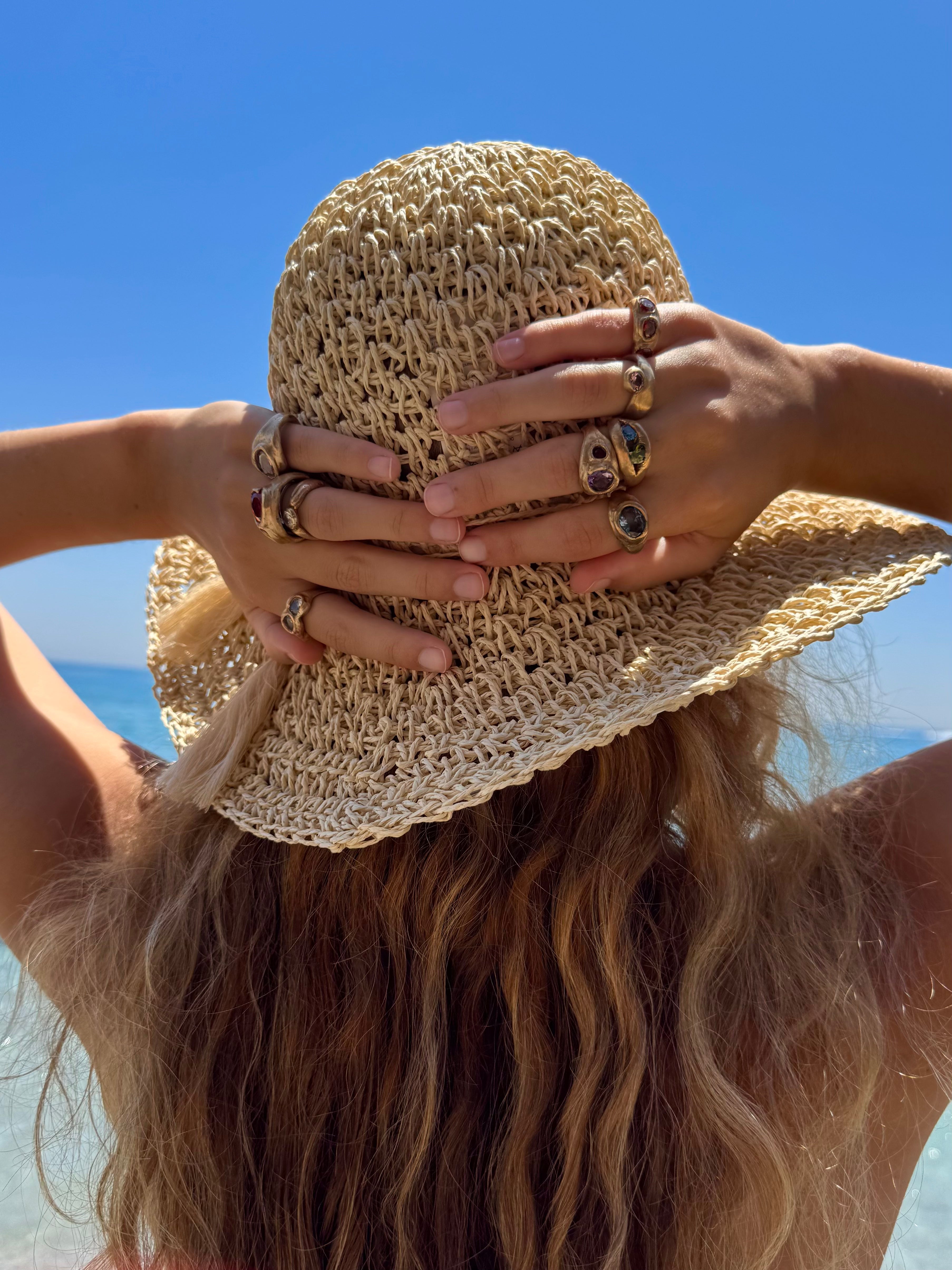 Handmade pieces in bronze and silver, with luminous stones that tell a story of light and time.