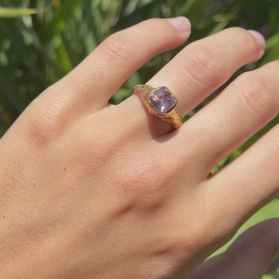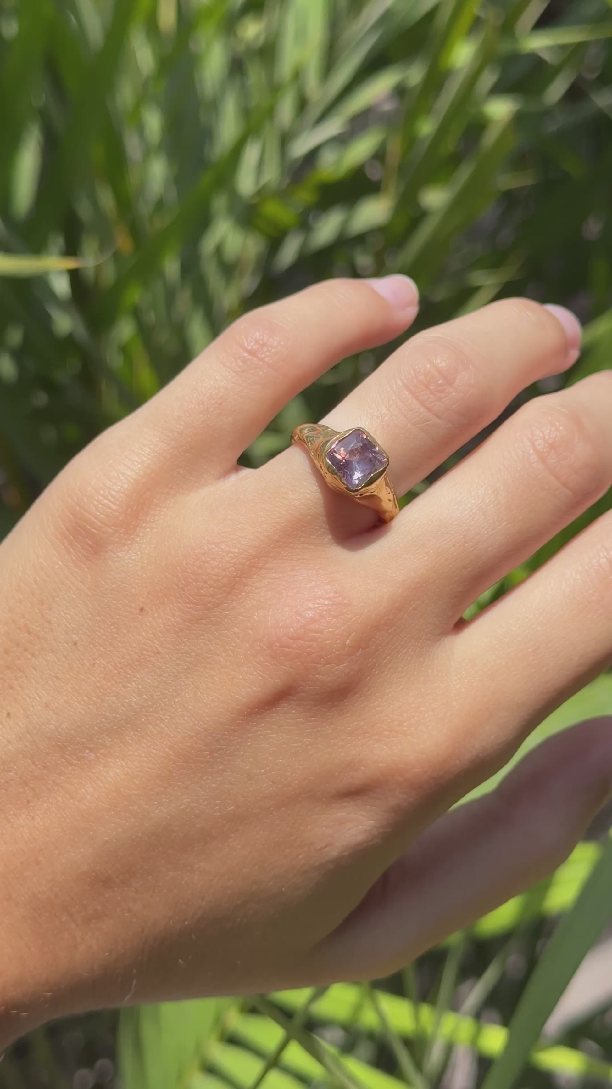 Handmade in 925 sterling silver with 18k gold vermeil, this ring features a natural 1.69 ct square amethyst. The rich violet gemstone adds a refined touch, making the piece elegant, timeless, and perfect for everyday wear or special moments.