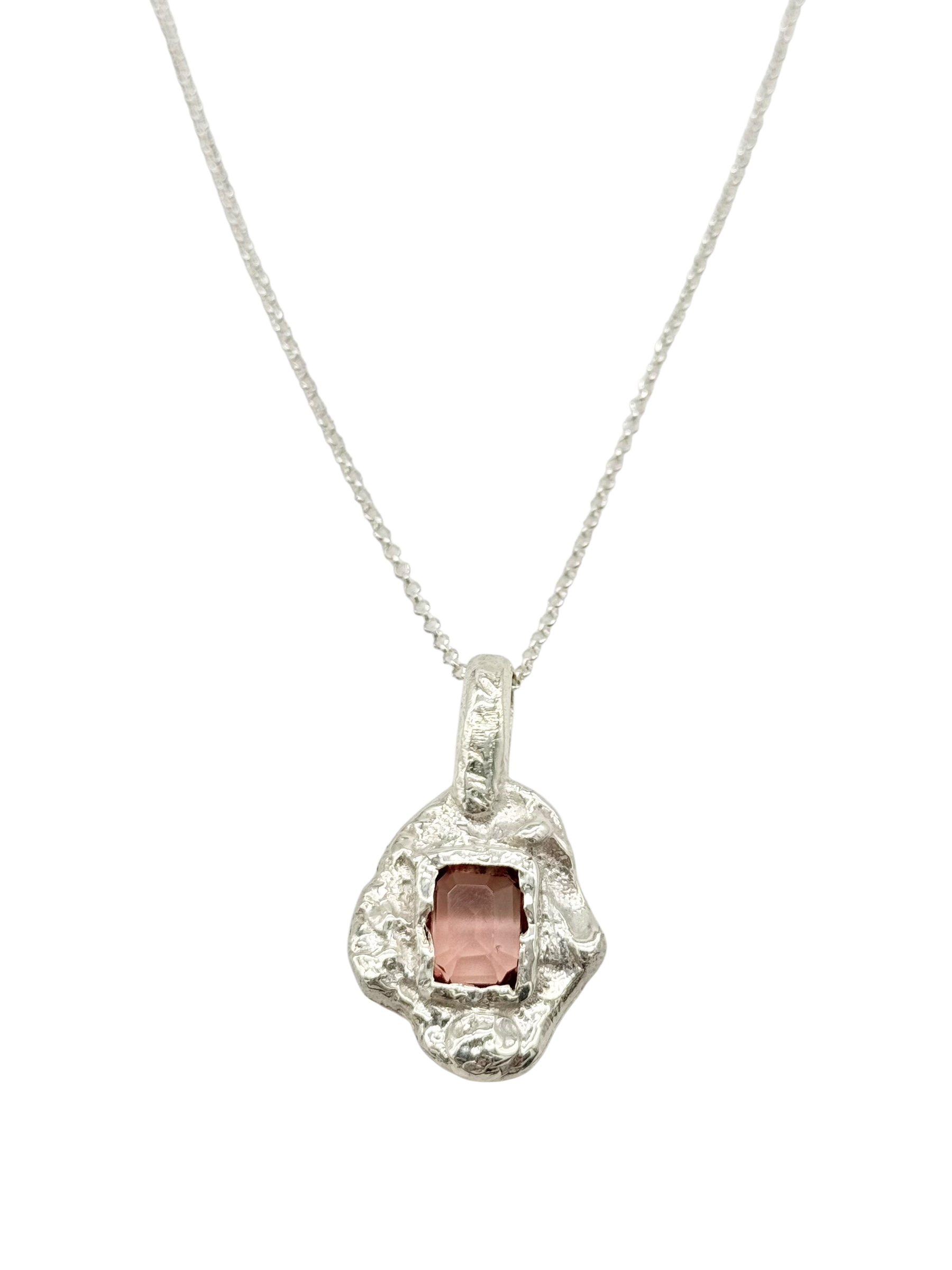 The Melon Necklace is a handcrafted piece made from 950 silver, featuring a beautifully textured design that highlights artisanal craftsmanship. At its center, a radiant lab-created melon stone adds a warm, elegant glow. Its unique finish brings depth and character, making it a standout accessory that effortlessly elevates any outfit. Comes with a matching silver chain for a refined, complete look.