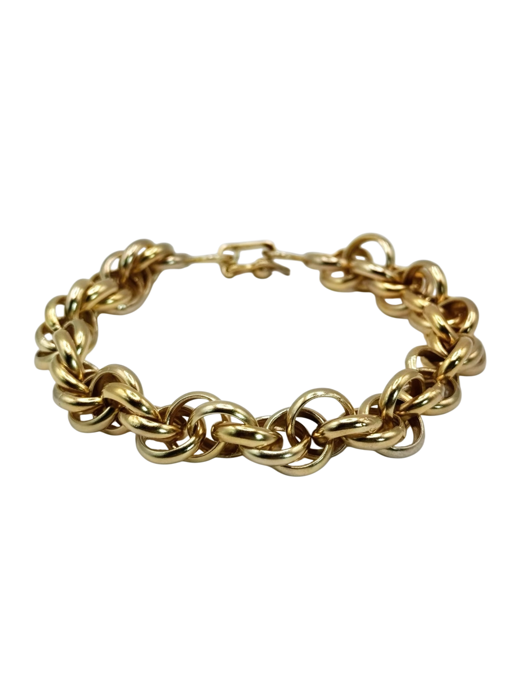 The Enlace Bracelet is a refined design crafted from 950 silver and adorned with 18k gold vermeil. Its timeless elegance and versatile style make it the perfect accessory to elevate any outfit.
