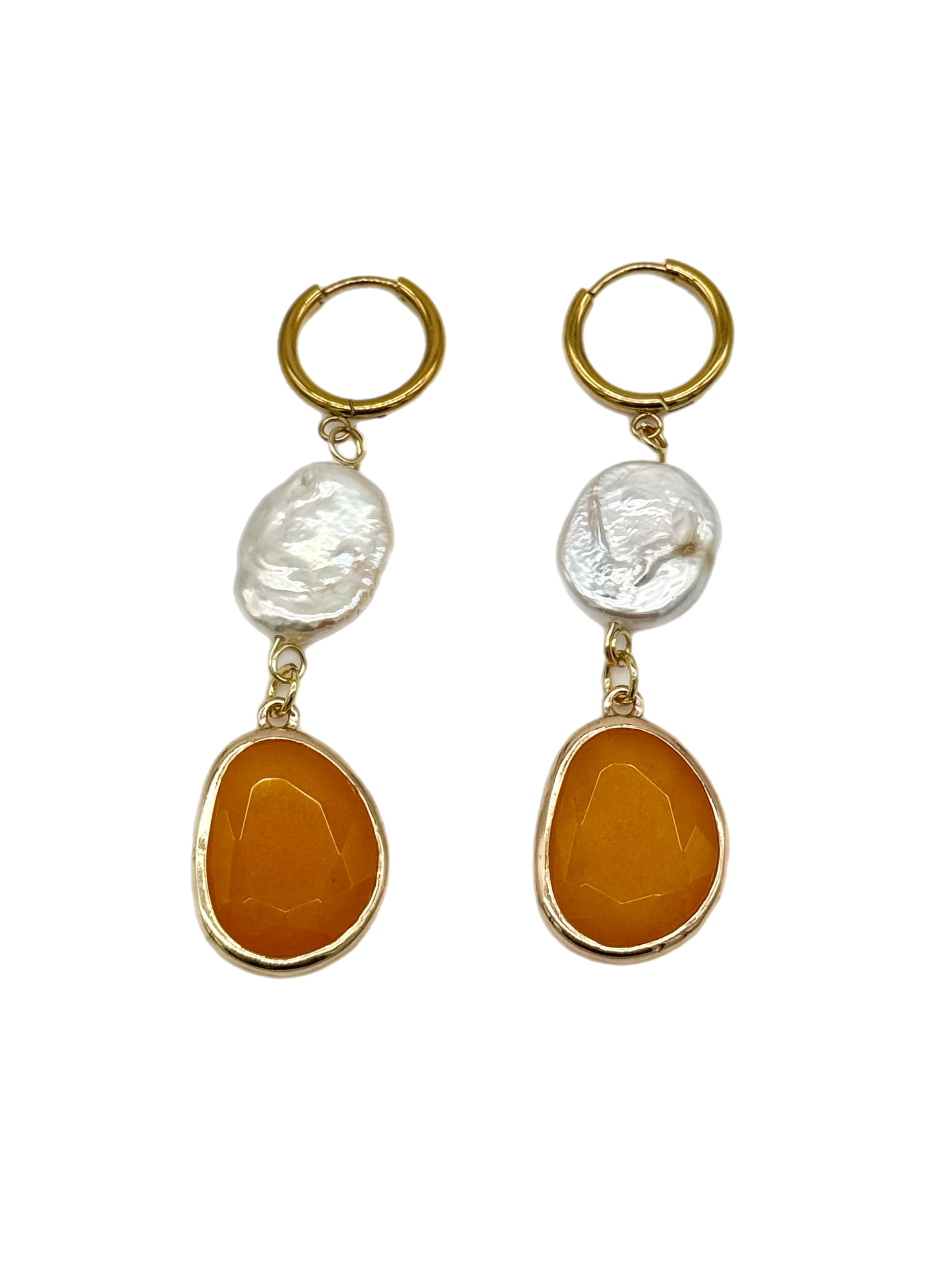 The Jade Earrings are elegant, handcrafted pieces featuring gold-plated settings that highlight their artisanal charm. Each earring pairs the natural beauty of a soft river pearl with a vibrant jade stone, creating a graceful balance of texture and color. Timeless and refined, they’re perfect for adding a touch of understated luxury to any look.
