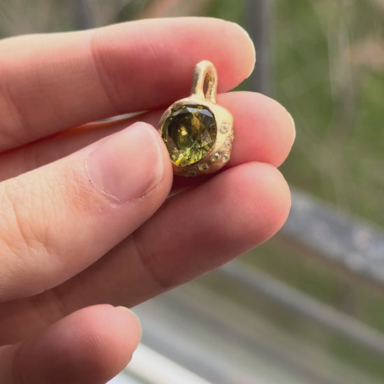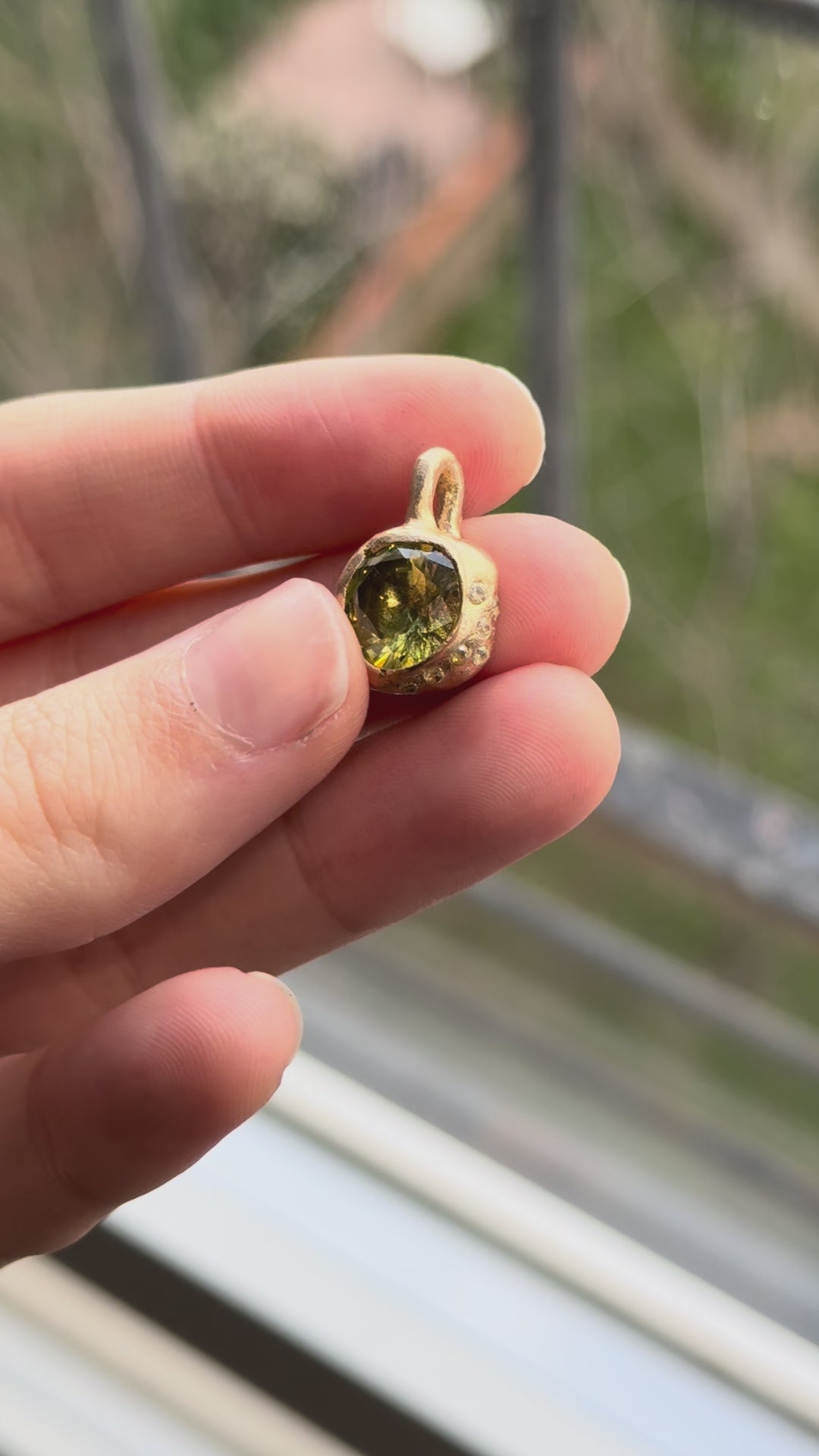 The Raíz Necklace is a tribute to nature’s strength and elegance, handcrafted in bronze with a harmonious balance of organic and refined elements. At its heart, a lab-created peridot stands out with a serene glow, complemented by smaller sparkling lab-created peridots that add a delicate brilliance. A statement piece that connects beauty with sustainability. Includes a chain for a complete and refined look.
